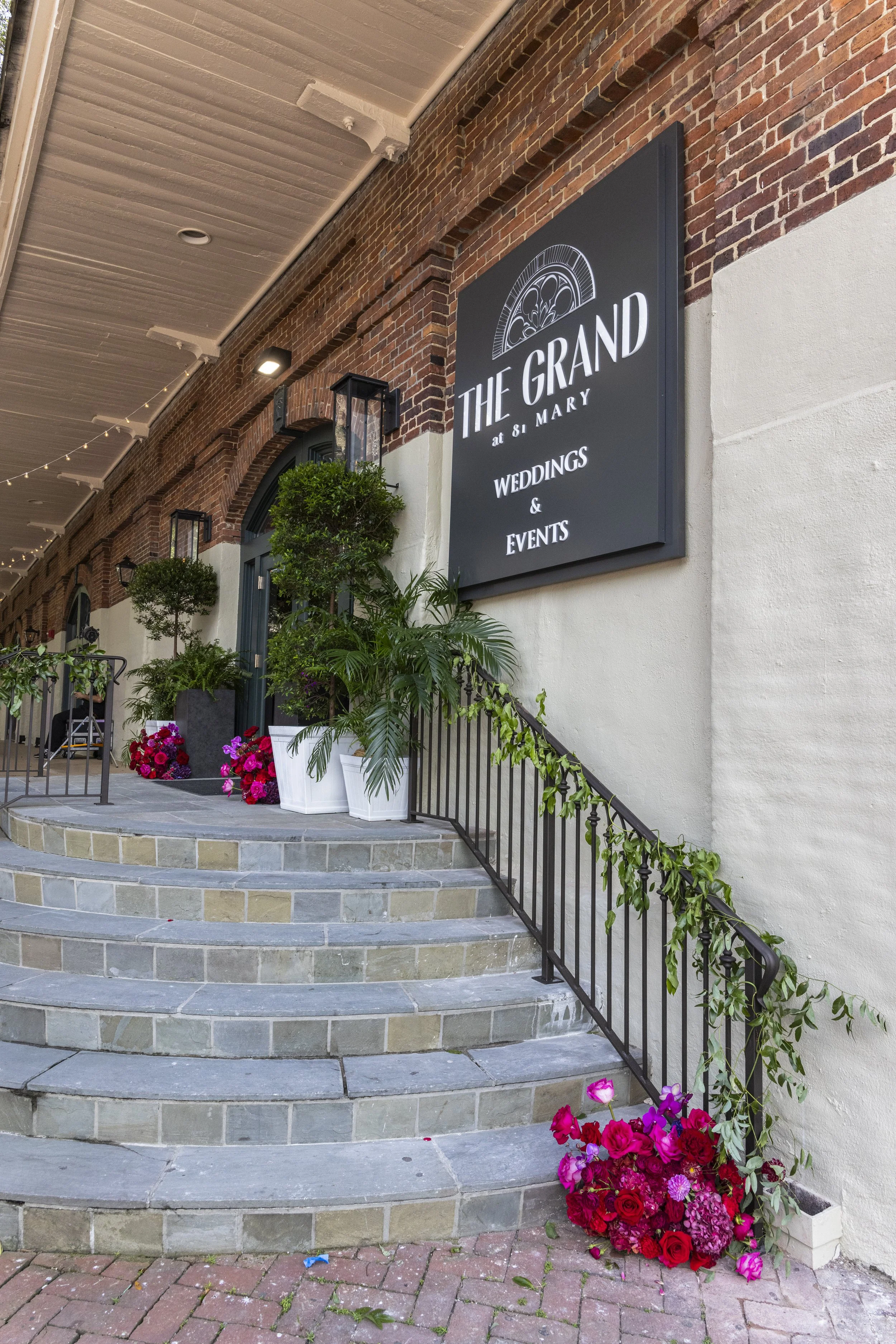 Located at 81 Mary Street in downtown Charleston, The Grand at 81 Mary is steps from the vibrant energy of King Street and surrounded by the rich architecture, history, and culture that make this city special. You’re just a short walk from boutique shops, acclaimed restaurants, historic churches, and landmarks — everything your guests could want in a night out, or for wedding weekend explorations. Parking is convenient: there are public garages close by (for example, the well-known Majestic Square Garage on King Street), metered street parking, and city parking facilities nearby.